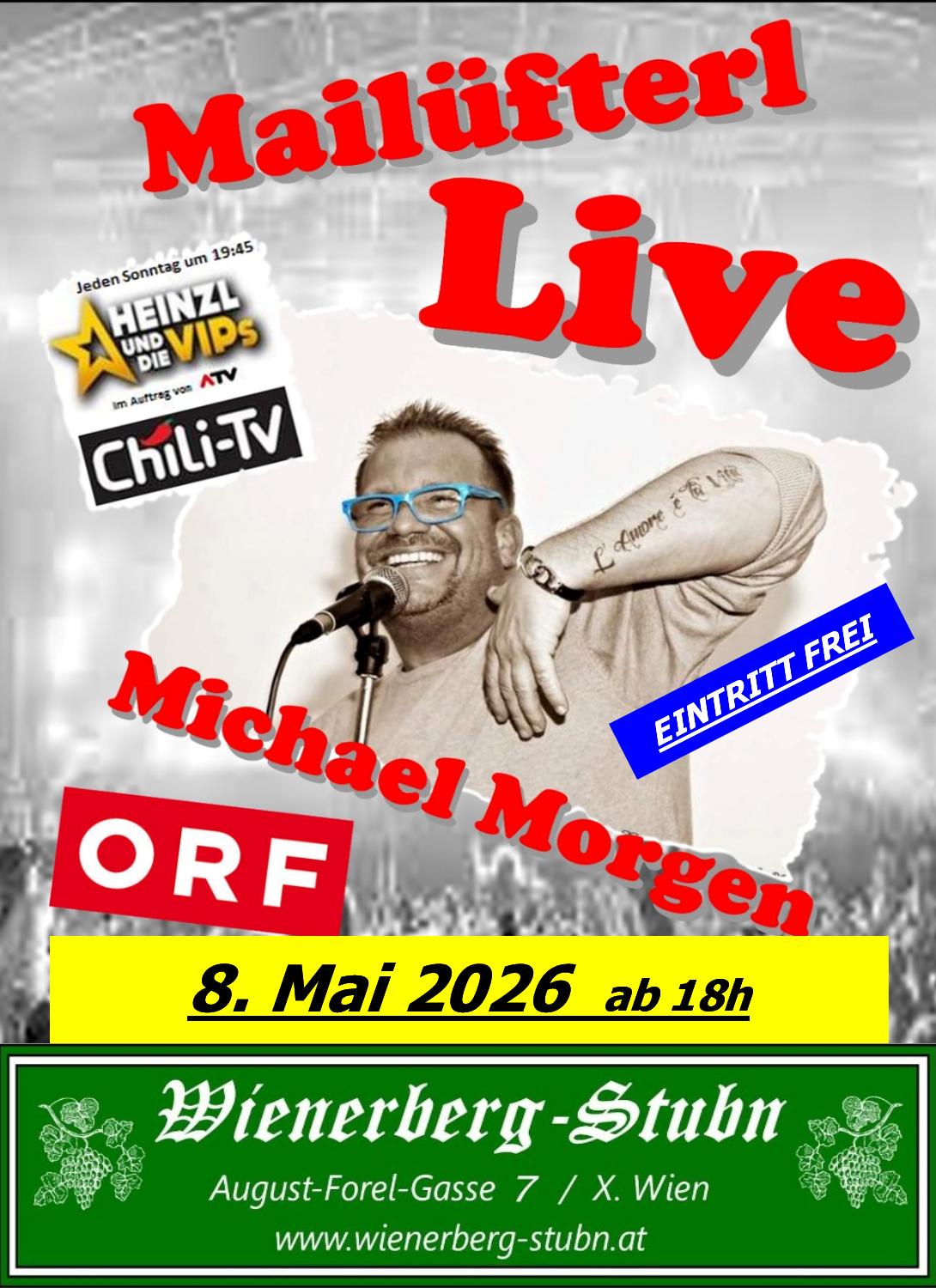 VERANSTALTUNGEN : 2026 in der WIENERBERG-STUBN NÄCHSTER TERMIN : FREITAG 8. Mai 2026 ab 18 h LIVE – MUSIK Reservierung auch möglich unter 0676 46 35 200 oder im Lokal DEMNÄCHST : DUO WEINBLATT NAIRZ & BRIX Mit uns in Favoriten aufgewachsen HANS – ECKER – TRIO In Memory an unseren langjährigen Freund HORST CHMELA !!! Zurück zur STARTSEITE